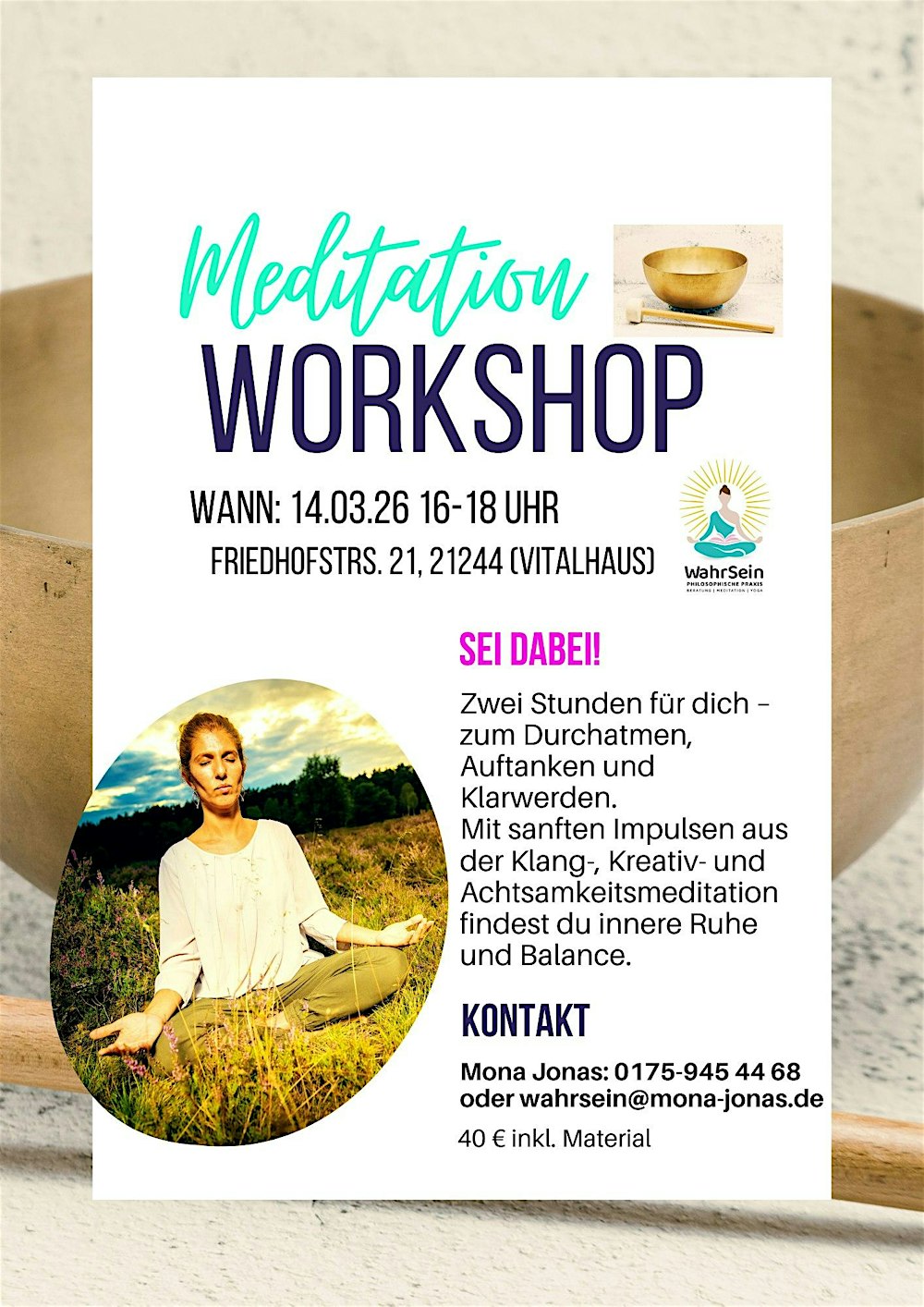 Erlebe Klang, Kreativität & Achtsamkeit in einzigartigen Meditations-Workshops. Entspannung, Inspiration & innere Balance erwarten dich!